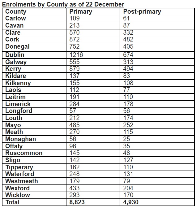 The Department of Education confirmed that as of 22 December, 13,753 Ukrainian pupils have been enrolled in schools across Ireland. Out of that figure, 8,823 of these pupils have been accommodated in primary schools while 4,930 pupils have enrolled in post-primary schools.