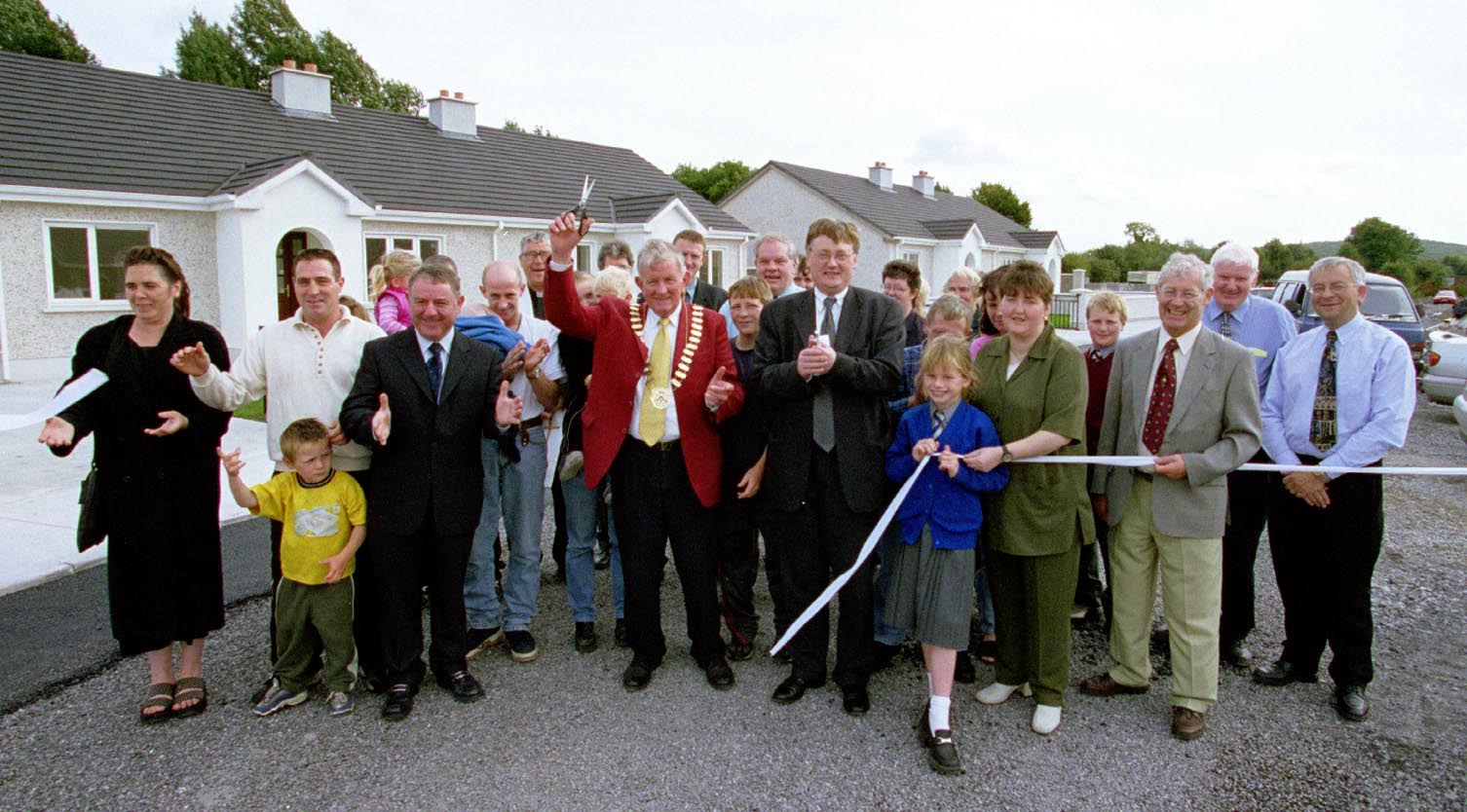 New homes for families - Marty cuts the ribbon. Tap the next icon for Another of Alf's.