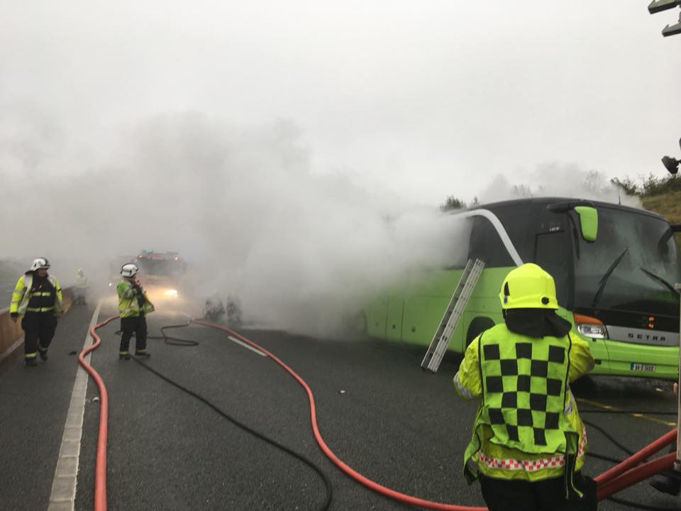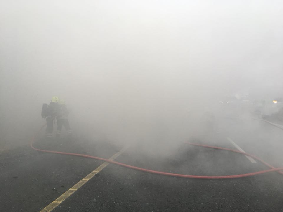 The motorway was closed for a time due to very bad visibility caused by smoke and to allow crews to tackle the fire safely.