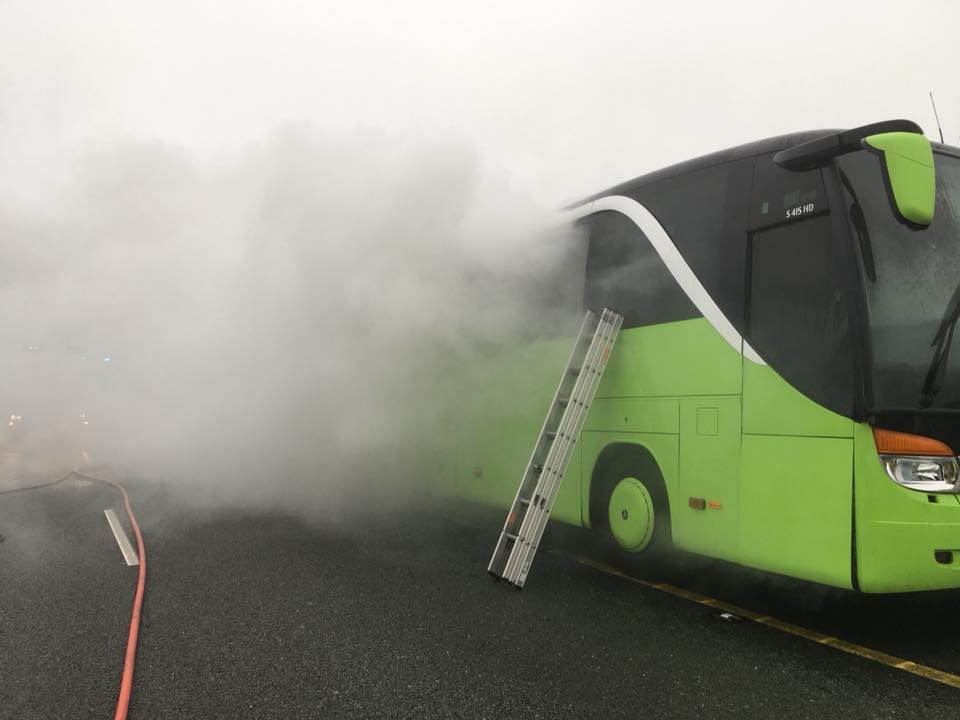 Part of the M7 motorway in Laois was closed on Sunday afternoon as a green bus went on fire.