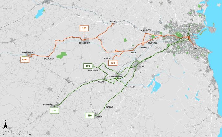 Commuters and students are set to benefit from a new bus service operating on six routes linking Dublin city centre with Portlaoise, Tullamore, Kildare, Maynooth, Naas, Newbridge, Enfield, Rathangan, Edenderry, Athy and Kilcullen.