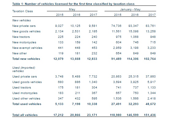 “There were 83,761 new private cars licensed in the first five months of 2017. This is a drop of 10.3% on the same period last year but the number of imported private cars licensed has risen by 49.6%," he said.