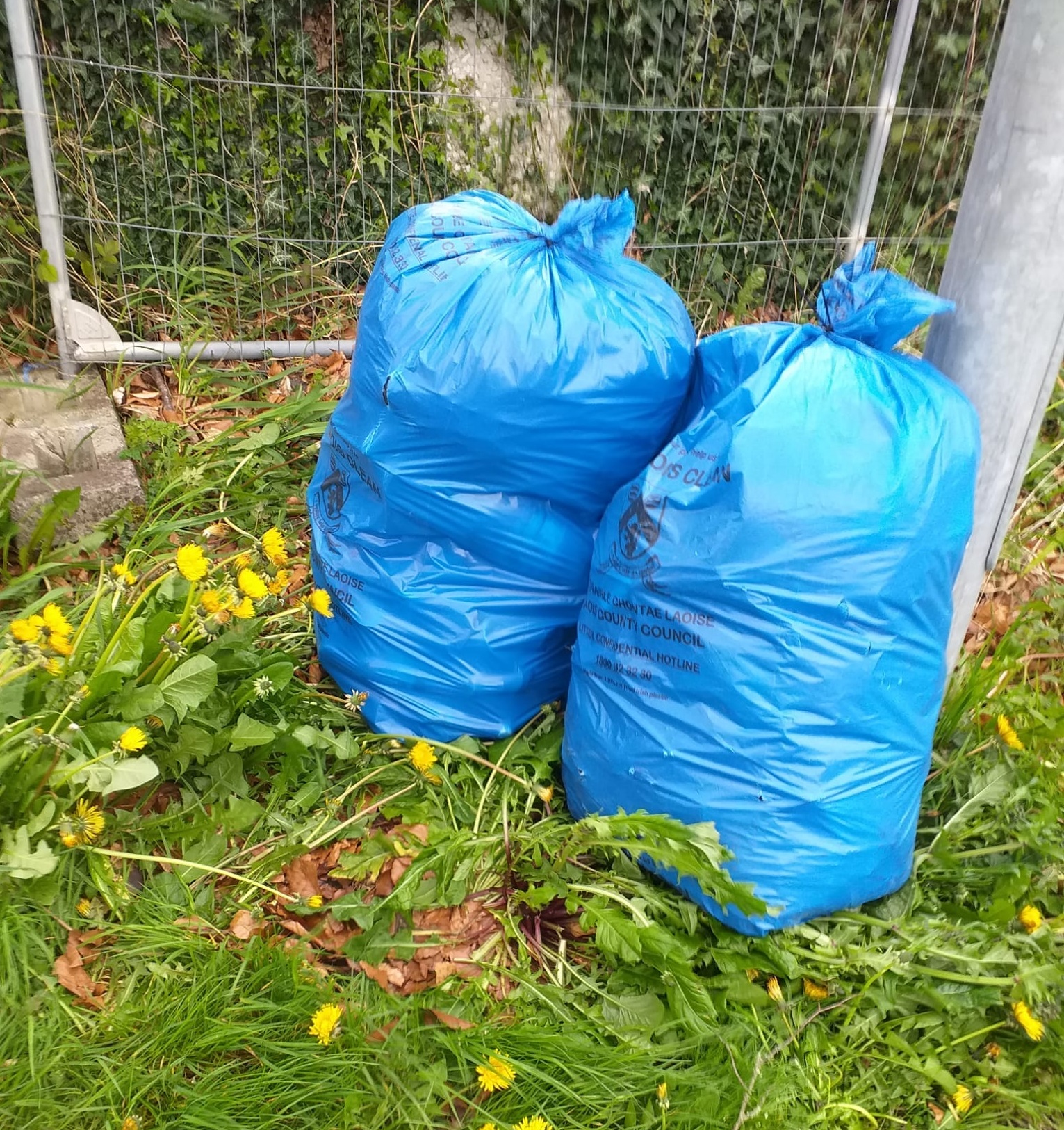 Volunteers worked throughout Laois to collect roadside rubbish in the printed blue bags. Bord na Móna Recycling will collect up the bags left for them on roadsides from April 8 to 15.