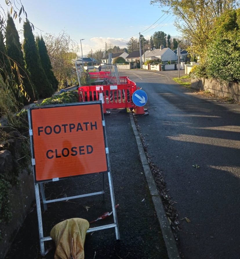 An old section of wall along the footpath began to collapse, leading Laois County Council to carry out emergency repair works. The footpath has since been closed off, leaving locals 'forced to walk into the path of oncoming traffic' due to a lack of accommodations in place, according to the Sinn Féin representative.