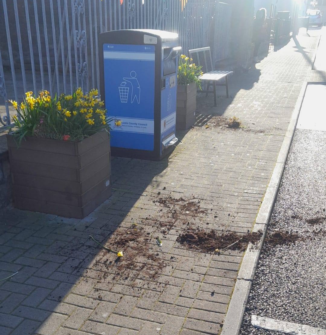 Mountmellick Tidy Towns had recently planted daffodils in planters by the church, and were disappointed to find them pulled from the planters and thrown on the ground.