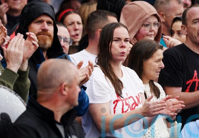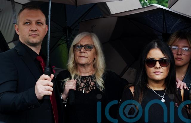 The family were consoled by Irish artist Guggi, once a member of post-punk band Virgin Prunes and close friend of U2’s Bono, and Kiera embraced a member of the crowd who presented her with flowers.