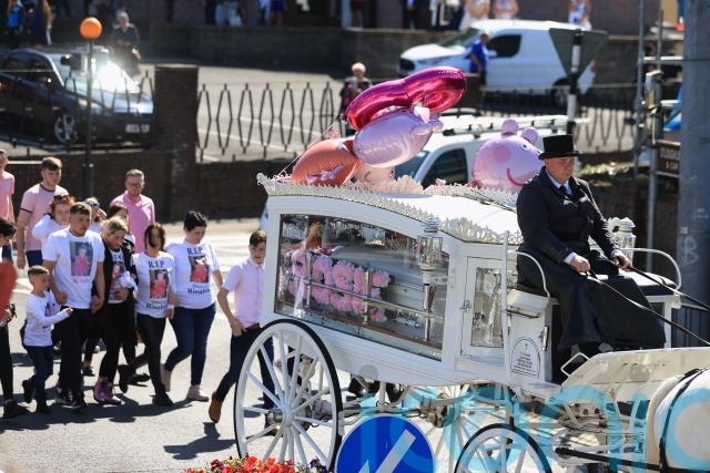 After the funeral, the girl’s white coffin was carried away from the church in a horse drawn white carriage.
