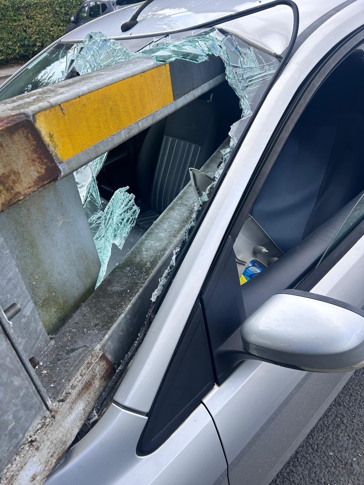 It is understood the teenage boy, who was sitting in the passenger seat, ducked a split second before the barrier would have hit him.