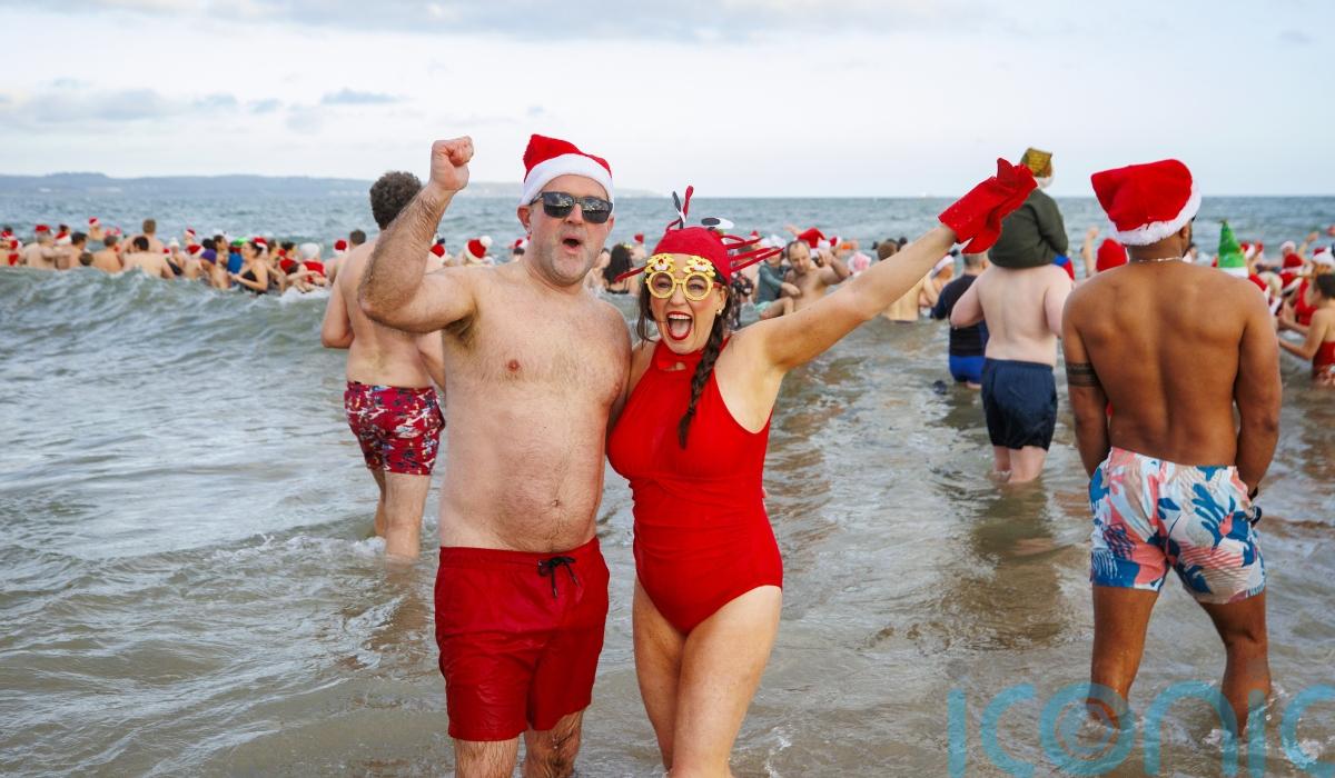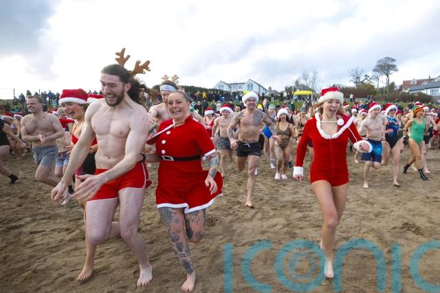 At 11am the Christmas Eve crowd raced into the cold water of Belfast Lough decked out in Santa hats, tinsel and elf ears.