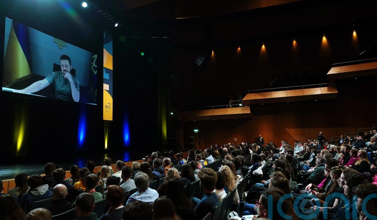 He said: “I think it’s fair to say that this is a moment of history, as President Zelensky takes time to speak to students here in Ireland, the future leaders of this country, to speak to students here in The Helix but also in 20 other locations right across our country today, students listening in to the President of Ukraine at this truly important time in global history.