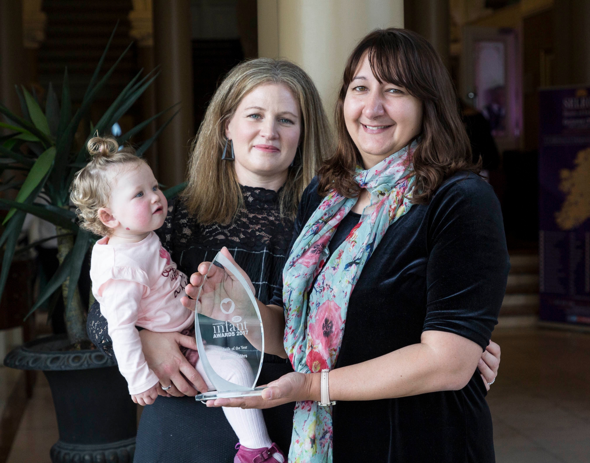 Pictured - Madelaine Göhrs - Midwife Of The Year with Louise Keane and her daughter Anú. Photo credit Paul Sherwood.