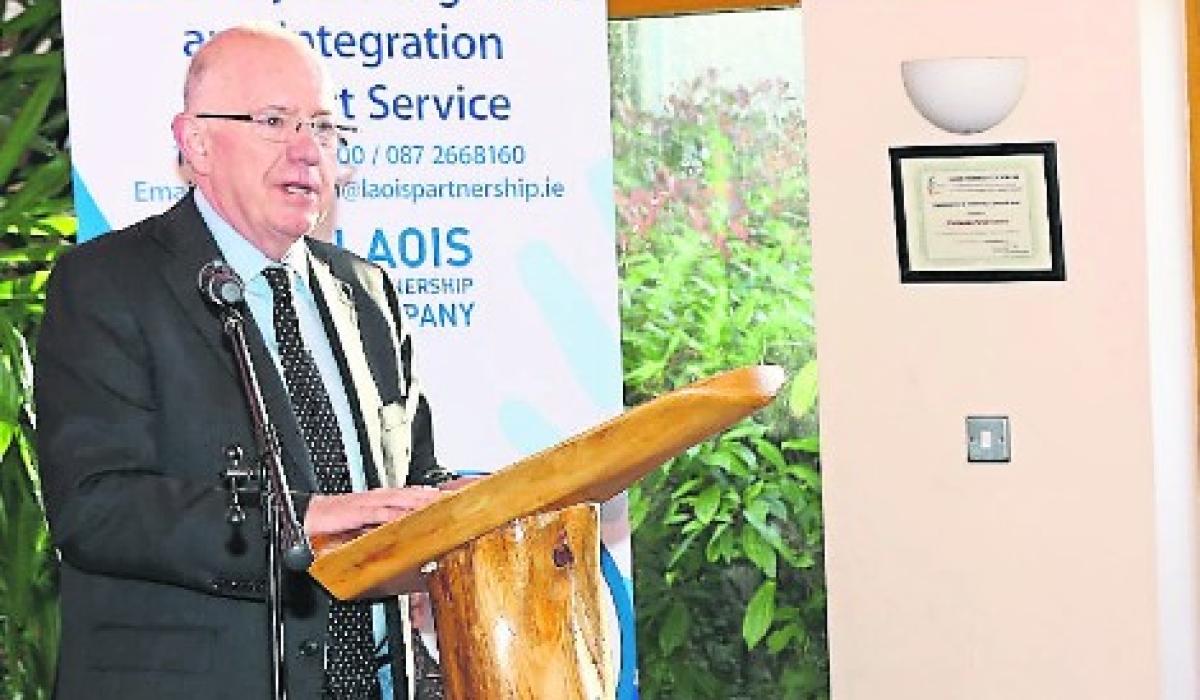 Minister Flanagan speaks at the launch in 2017 of the Laois Asylum Migration and Integration Support Service in Portlaoise Parish Centre. Photo: Michael Scully
