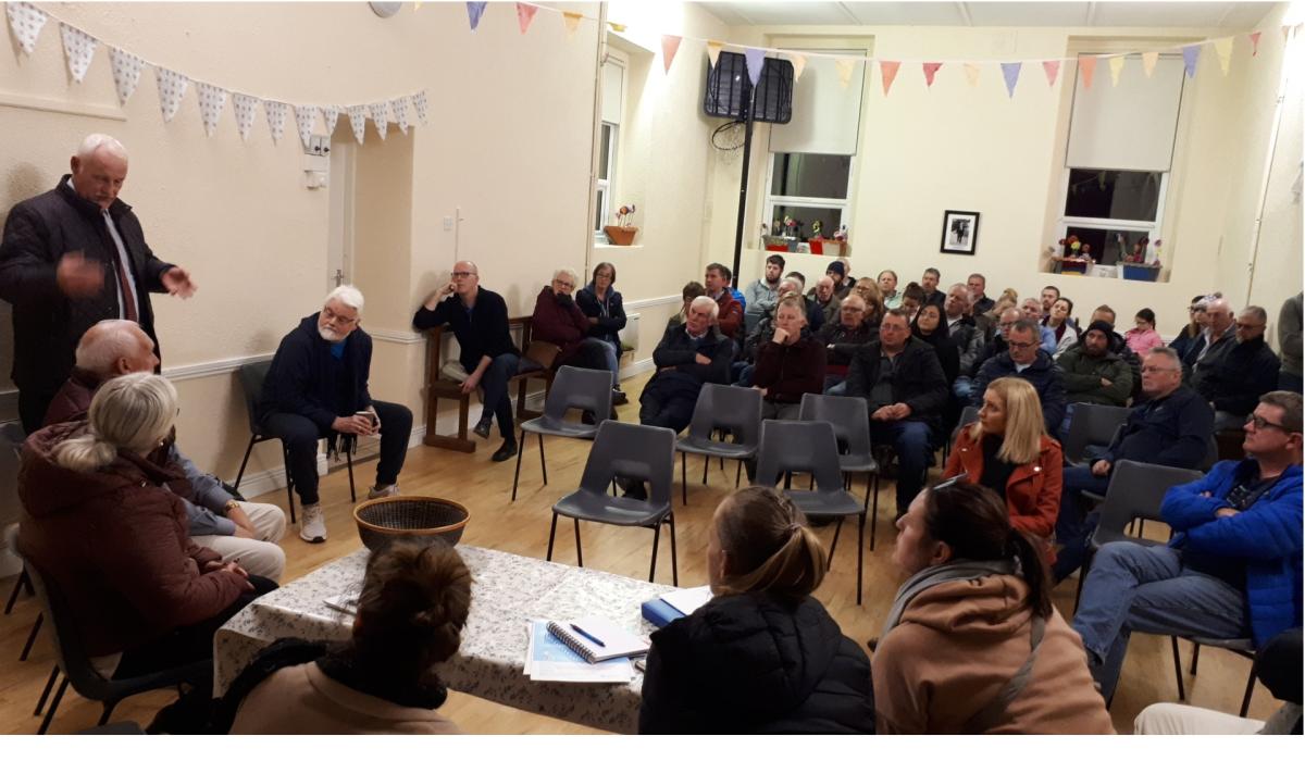 Some 60 people gathered in a Laois village this week to discuss the plan for a wind farm in their midst.