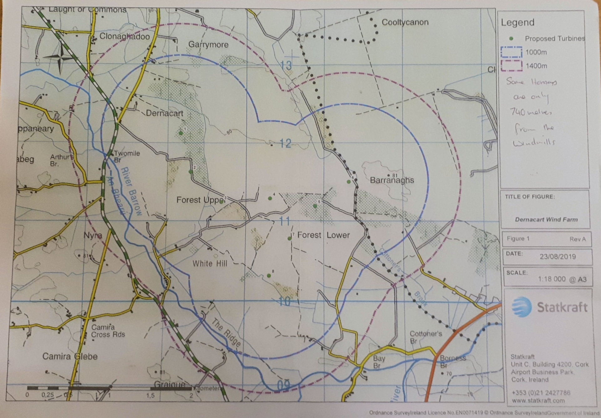 A Norwegian backed project would see the Dernacart Wind Farm have eight turbines of 185 metres height, 35 metres taller than those in Mount Lucas windfarm in Co Offaly.
