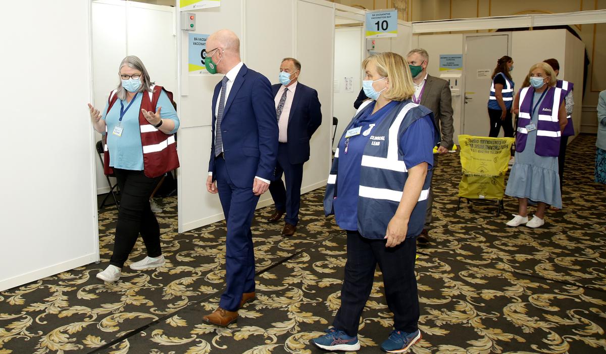 Minister for Health Stephen Donnelly with vaccine centre staff at the Laois vaccination hub in Portlaoise