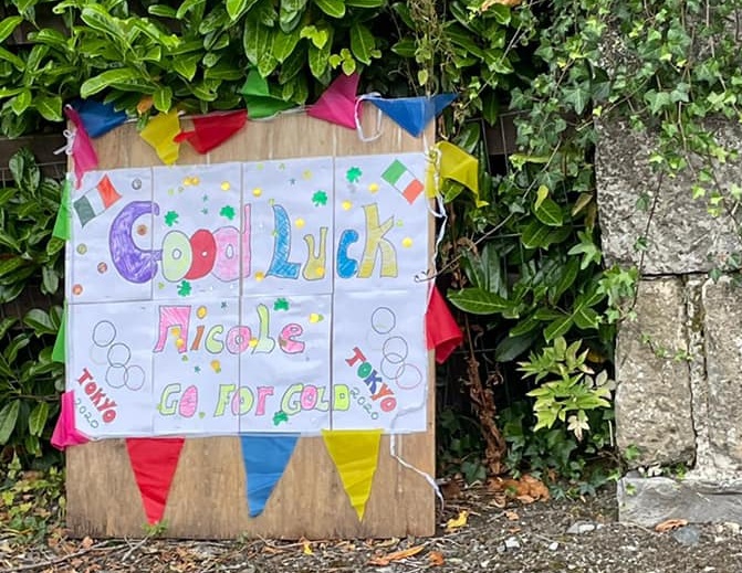 "Thank you for the good luck signs at Garryhinch cross, so lovely to see. Especially the homemade one , Mary Dempsey would you know whose done this one? And a big thanks to Brian Guinan and gang for the support shown to our Nicole, much appreciated.