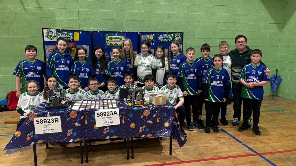 Rosenallis NS students made history as the first Leinster school to be crowned All Ireland champions in the VEX national robotics competition on February 26.