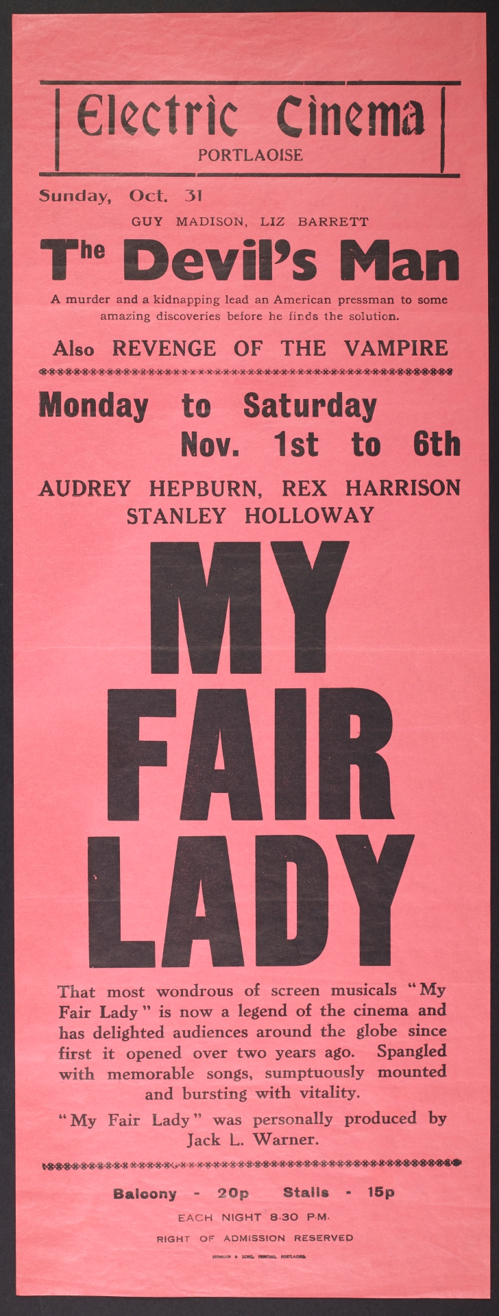 The equipment was installed by F Aldritt & Sons, Portlaoise and live music for the silent movies was by RP Bannon’s Orchestra from Portlaoise.
