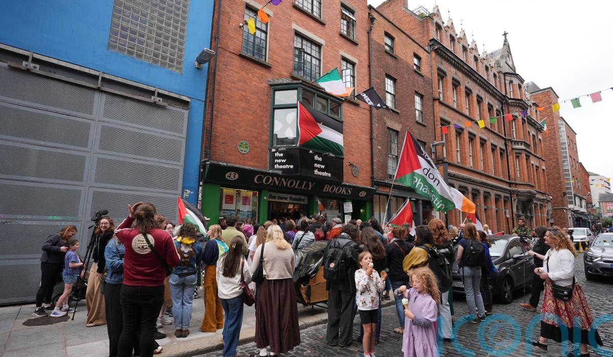 At the protest session at Connolly Books on Wednesday afternoon, several artists played Irish traditional music in solidarity with the rappers and Palestine.
