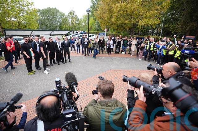 After O hAnnaidh left court, he applauded as crowds cheered, before posing for photographs with his bandmates.