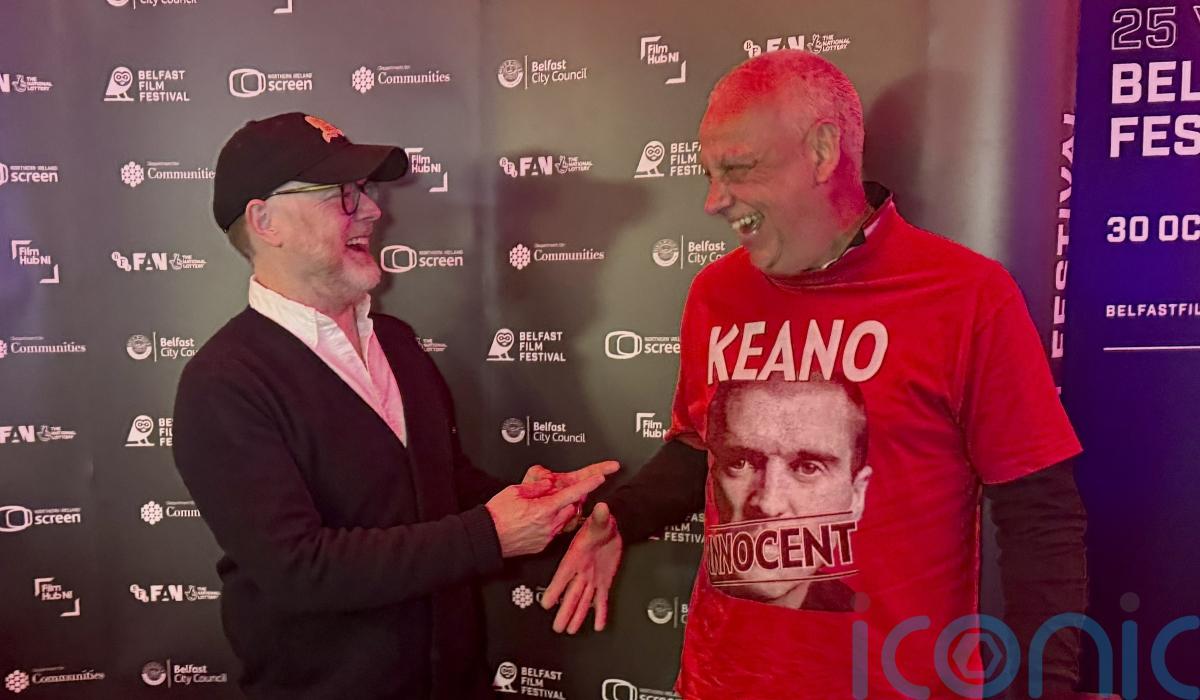 Also present at the screening was Co Down man Alistair Evans, who wore a 23-year-old t-shirt emblazoned with Roy Keane’s face and the words: “KEANO INNOCENT”.