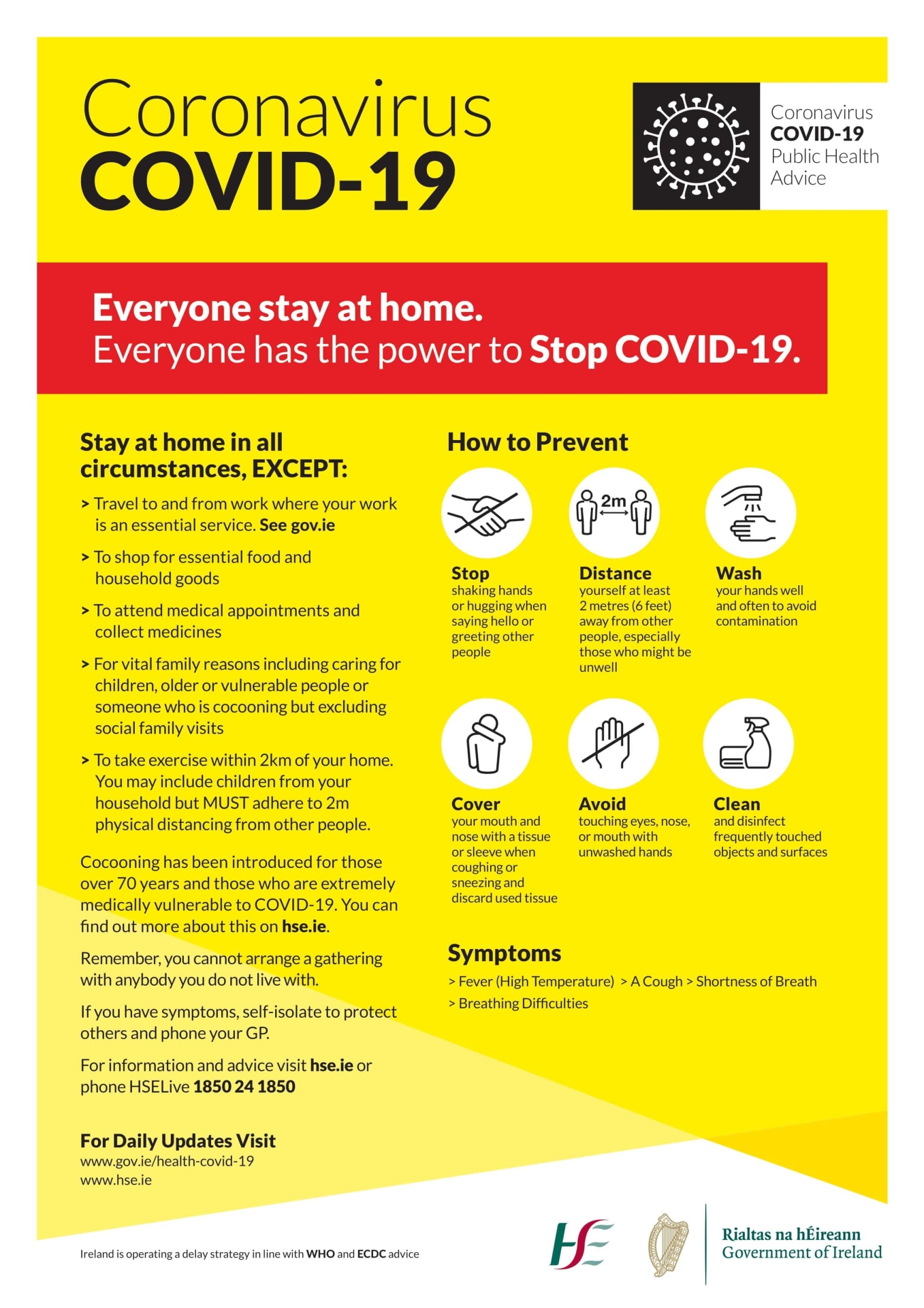 "Finally, I would like to reiterate that people should confine themselves to strictly necessary journeys only – it is essential that we keep up the pressure to slow the spread of COVID 19 by observing the HSE guidelines and the restrictions introduced by the Government on the advice of the Chief Medical Officer. If you do have to travel, please remember to drive safely and observe the rules of the road. While we all focus on defeating the virus, we should not lose sight of the need to take care of ourselves and other road users when driving," he said.