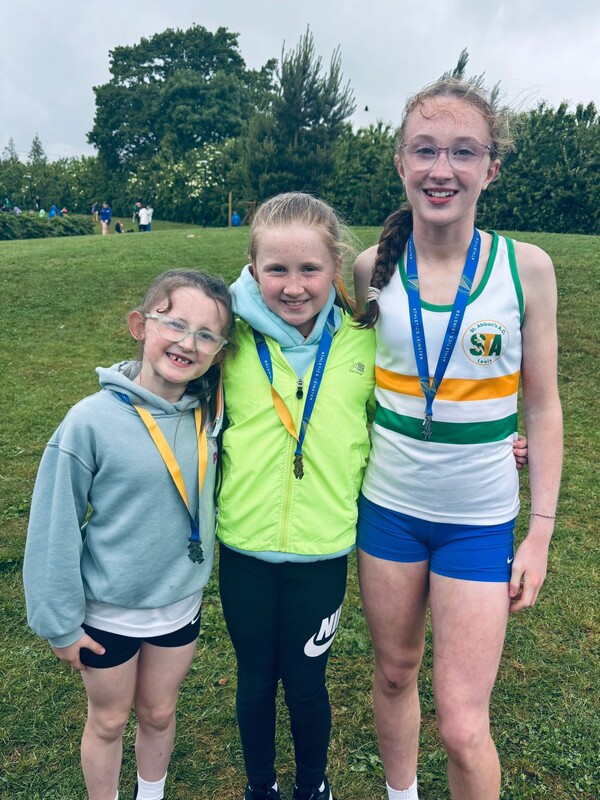 At Saturday’s Leinster Juvenile Relays, the club brought home seven sets of medals. Gold went to the Boys U12 team of Liam, Tom, Ruben and Leo, while silver medals were won by the Girls U9 (Ciara, Marnie, Beatrice, Hannah), Girls U14 (Roisín, Sophie, Eabha, Faye), Girls U15 (Zoe, Faye, Roisin, Lily), and Girls U18 (Cara, Rachel, Aayliah, Elaine). Bronze medals were secured by the Girls U12 (Meabh, Ava, Penelope, Shana) and the Boys U17 4x400m team (Kalem, Will, Eoghan Mitchell, Eoin Mulkerrins).