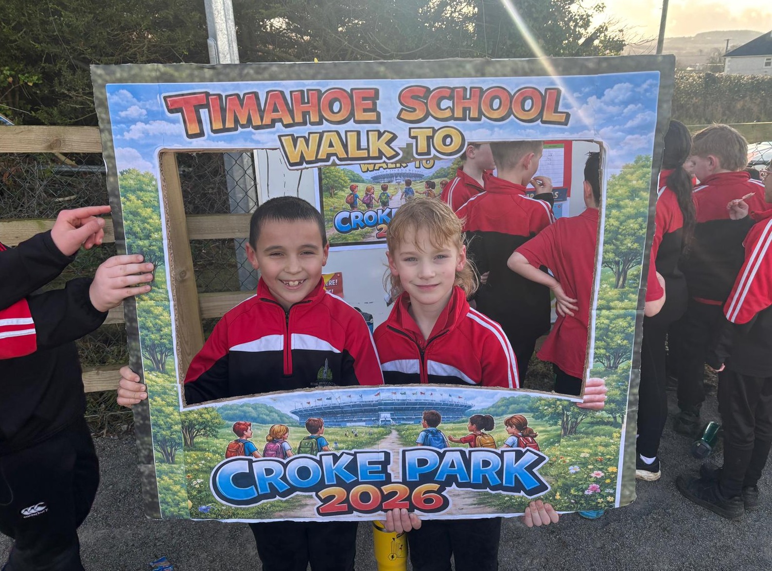 Laois students at Timahoe National School have walked the distance from Timahoe to Croke Park and back in aid of the school's parent's association.