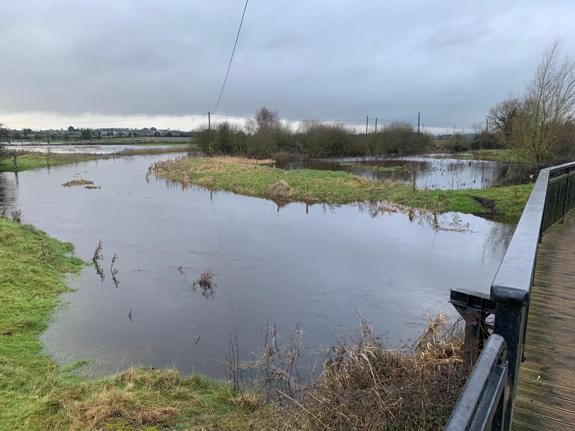 The flooded River Triogue beside The Rock GAA grounds, on Sunday, January 25. Photo: The Leinster Express