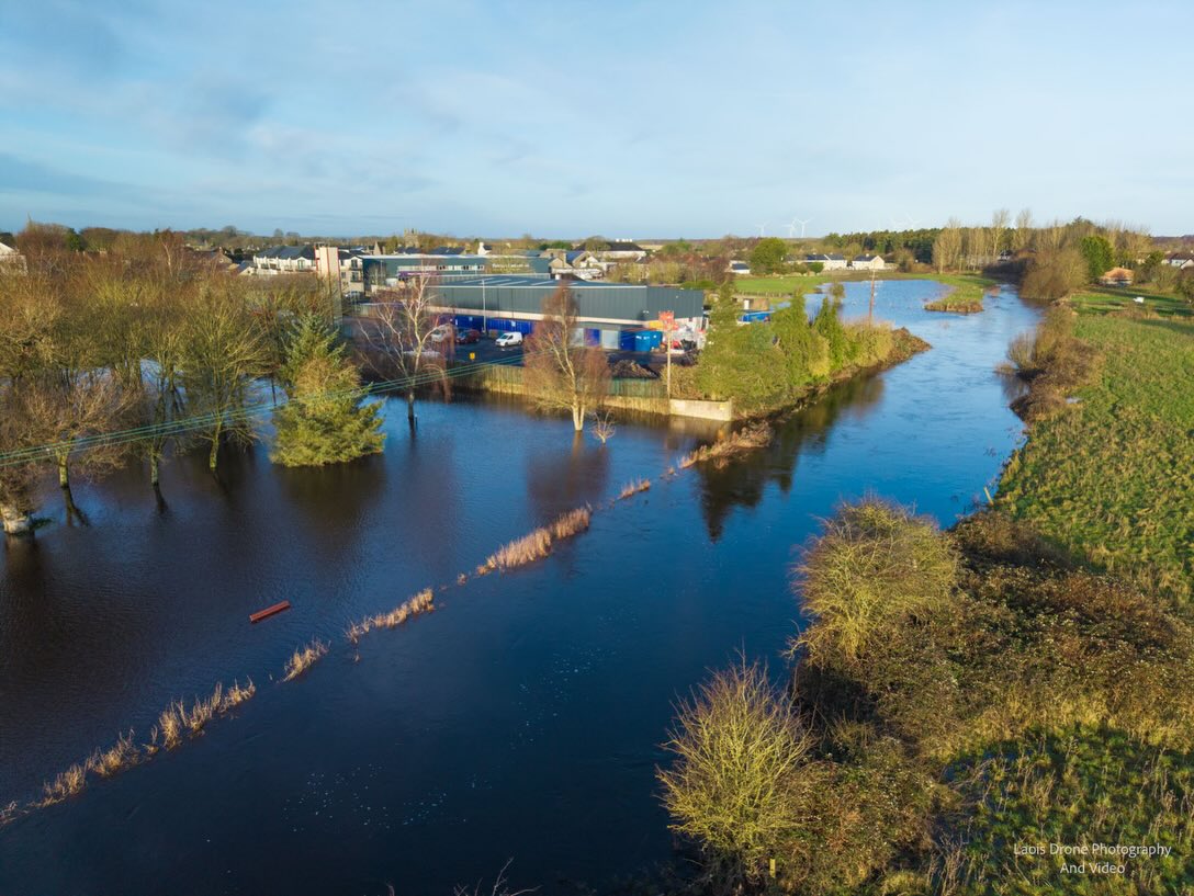 Laois photographer Con Murphy has captured incredible drone photographs of the flooding in People's Park, Portarlington as the Barrow's riverbanks burst.