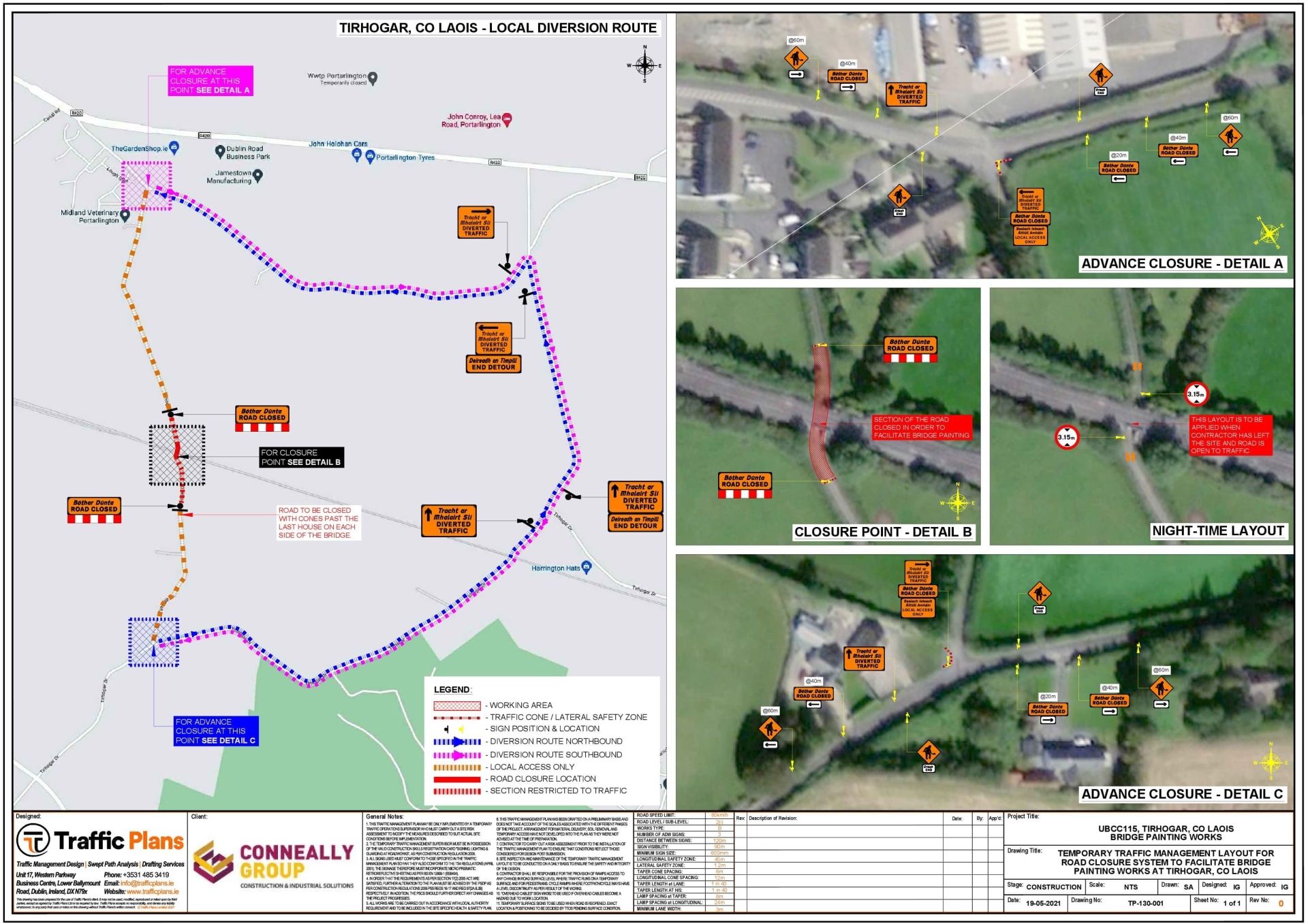 Laois County Council has advised that it is to temporarily close Tirhogar Drive for 10 metres either side of UBC115 Irish Rail Bridge.