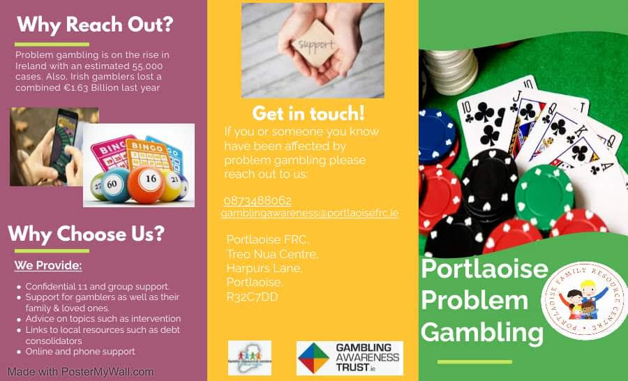 Portlaoise Problem Gambling Service operates within the Portlaoise Family Support Centre (PFRC).