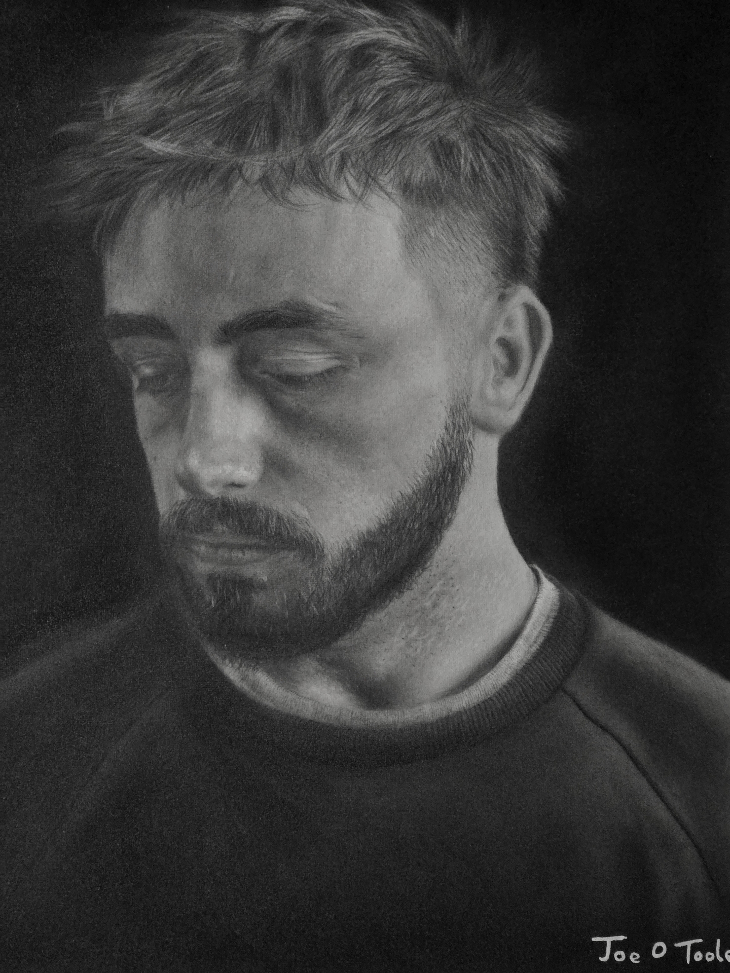 As an artist, Mr O'Toole's medium of choice is graphite, as he believes it provides a great depth and darkness to his work that contrasts against the delicate highlights.