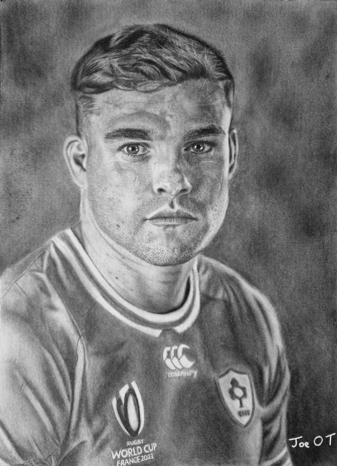 Pictured: a portrait of Romain Ntamack by Joe O'Toole
