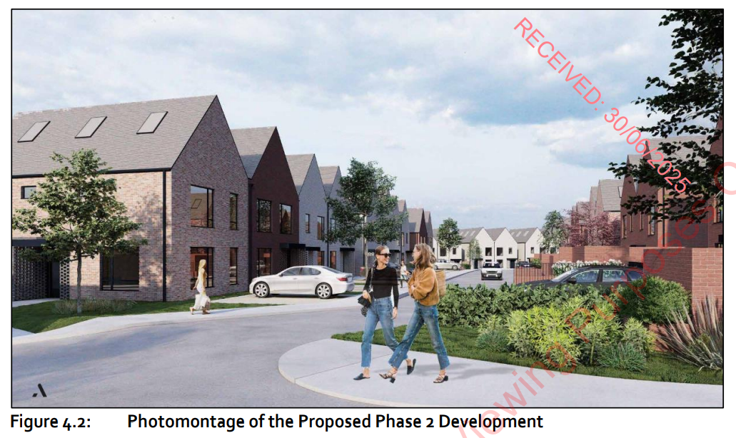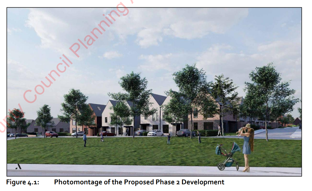 Phase two consists of a total of 92 houses including 86 four bed and six two bed sheltered housing units, parking, public open space, landscaping and lighting on a 3.85 hectare site.