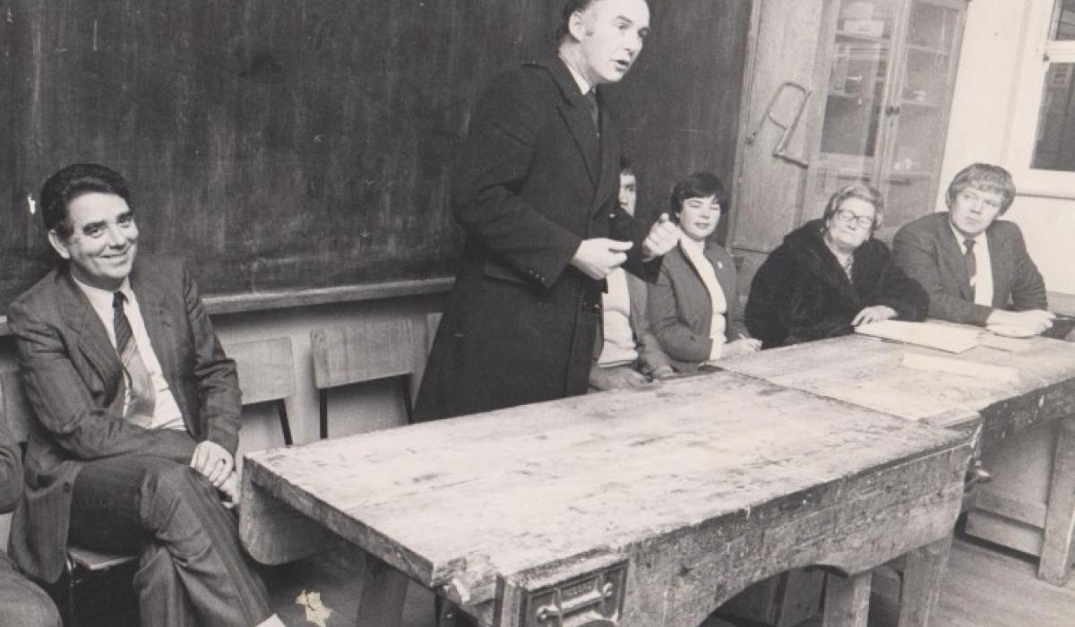Jerry Lodge, Chairman of Laois VEC addressing a meeting in Mountmellick Vocational School. On the left is Ronan Rice, CEO of Laois VEC.