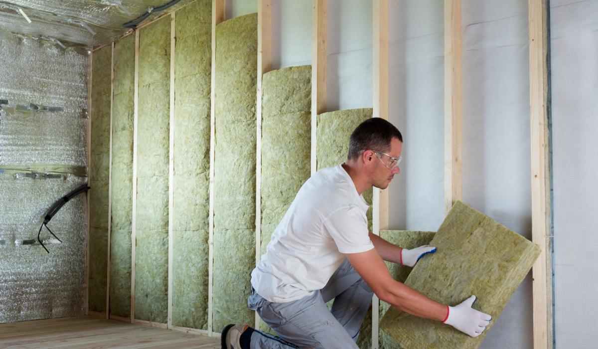 Insulating rock wool insulation in wooden frame for future house walls for cold barrier