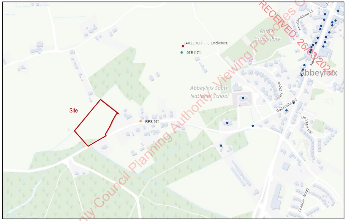 The 1.83 hectare site is currently used as a pasture field, and is in the demesne of Abbey Leix estate.