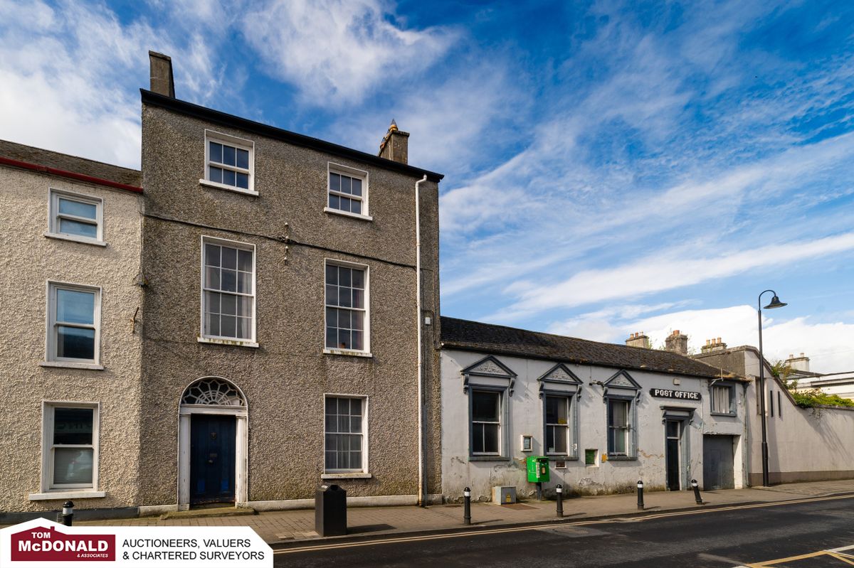 Located on the Main Street in Portarlington, the property which has an overall floor area of 3,480 square metres, is on sale with a guide price of €350,000. The former Post Office, adjoining three storey five bedroom Georgian house and outbuildings is being sold by Portarlington auctioneer, Tom McDonald & Associates. Click NEXT to view more images.