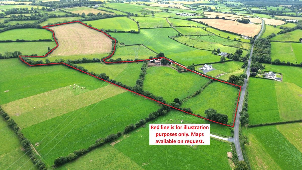 The land is top quality and described as arable by nature. It is presently in both corn and permanent pasture. It is laid out in one division and it is divided into a number of fields with fencing and water laid on throughout. The old world four bedroom farm house was built approximately 1860 and extends to 2000 square feet. It is surrounded by a number of old stone outbuildings, concrete rear yard, pea gravel front yard, a nicely kept garden which include a large square lawn, an apple orchard and pony paddock.