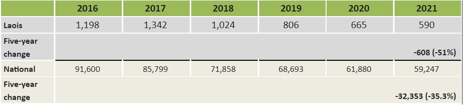 Figures show that the 2021 social housing waiting list for Laois falls 11% on 2020 figures.