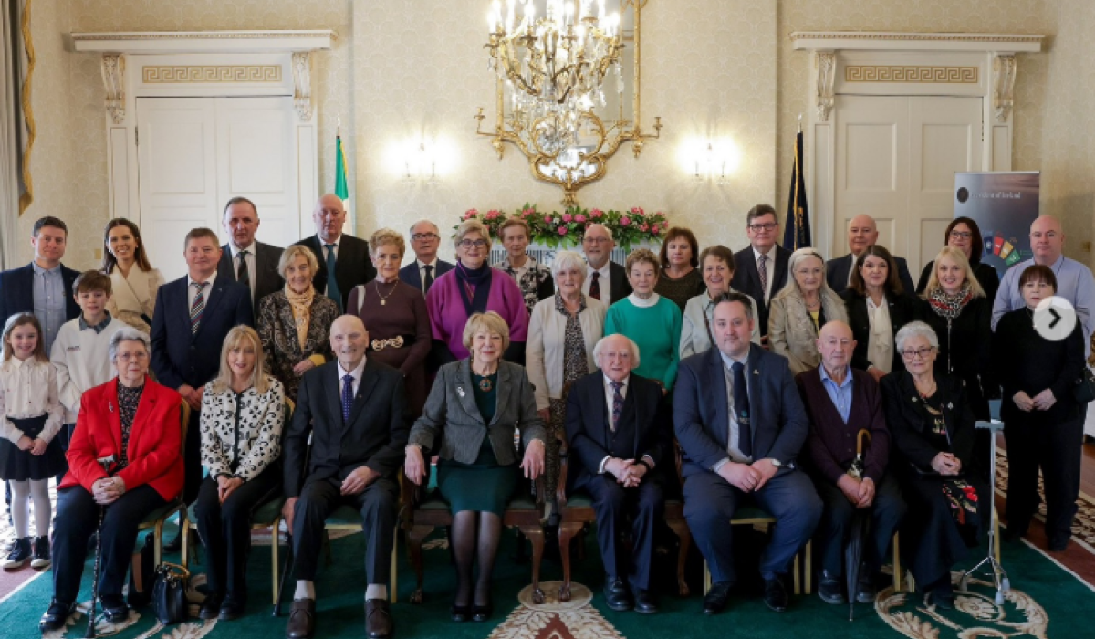 Jim Cannon to the right of Sabina Higgins with other members of SEFF at Aras an hÚachtaráin where the were met by President Michael D Higgins.