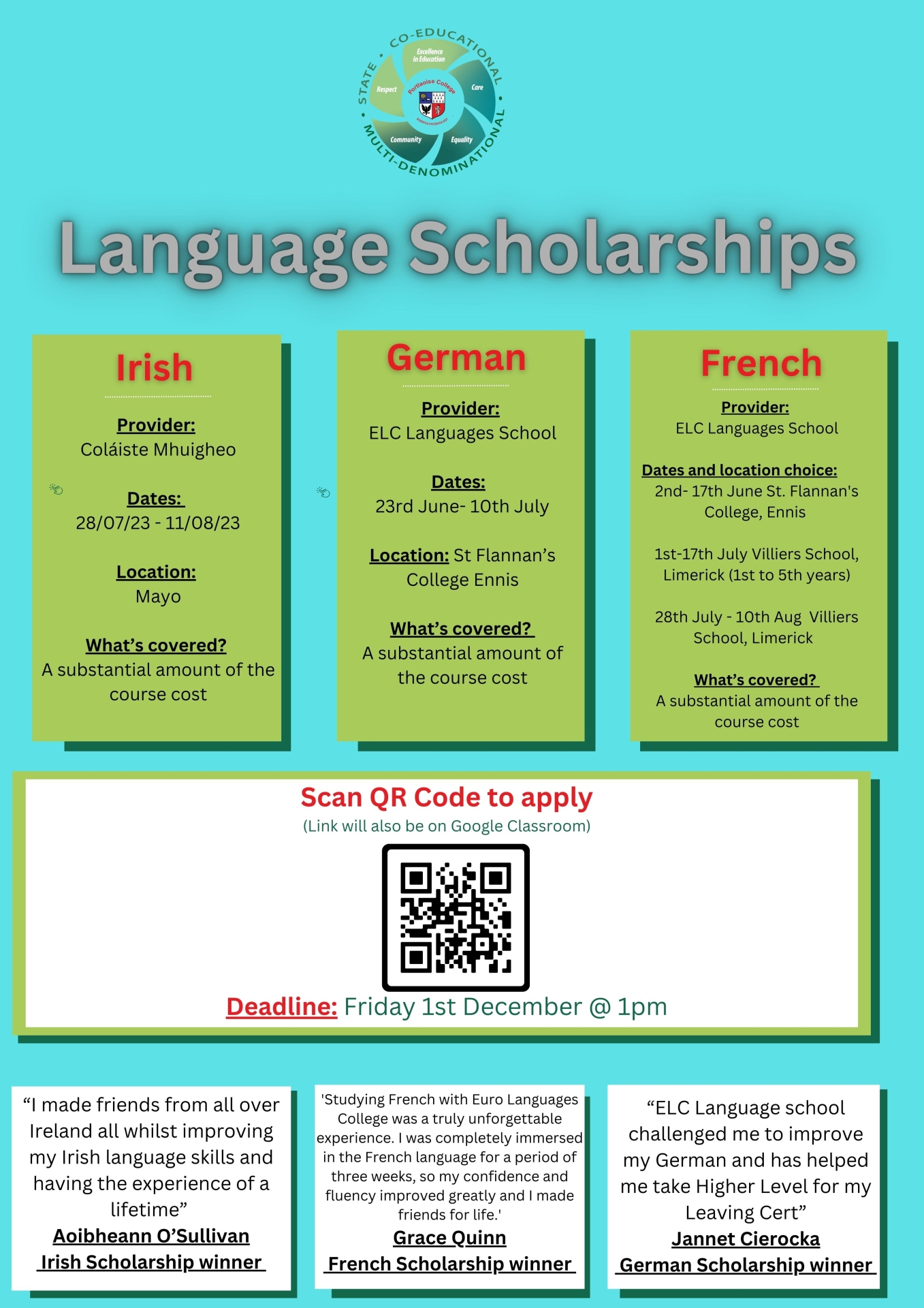 Students who wish to apply for the scholarships can do so via the QR code that will be available on the school's Facebook page and on posters in the school, as well as through their Language Google Classroom.