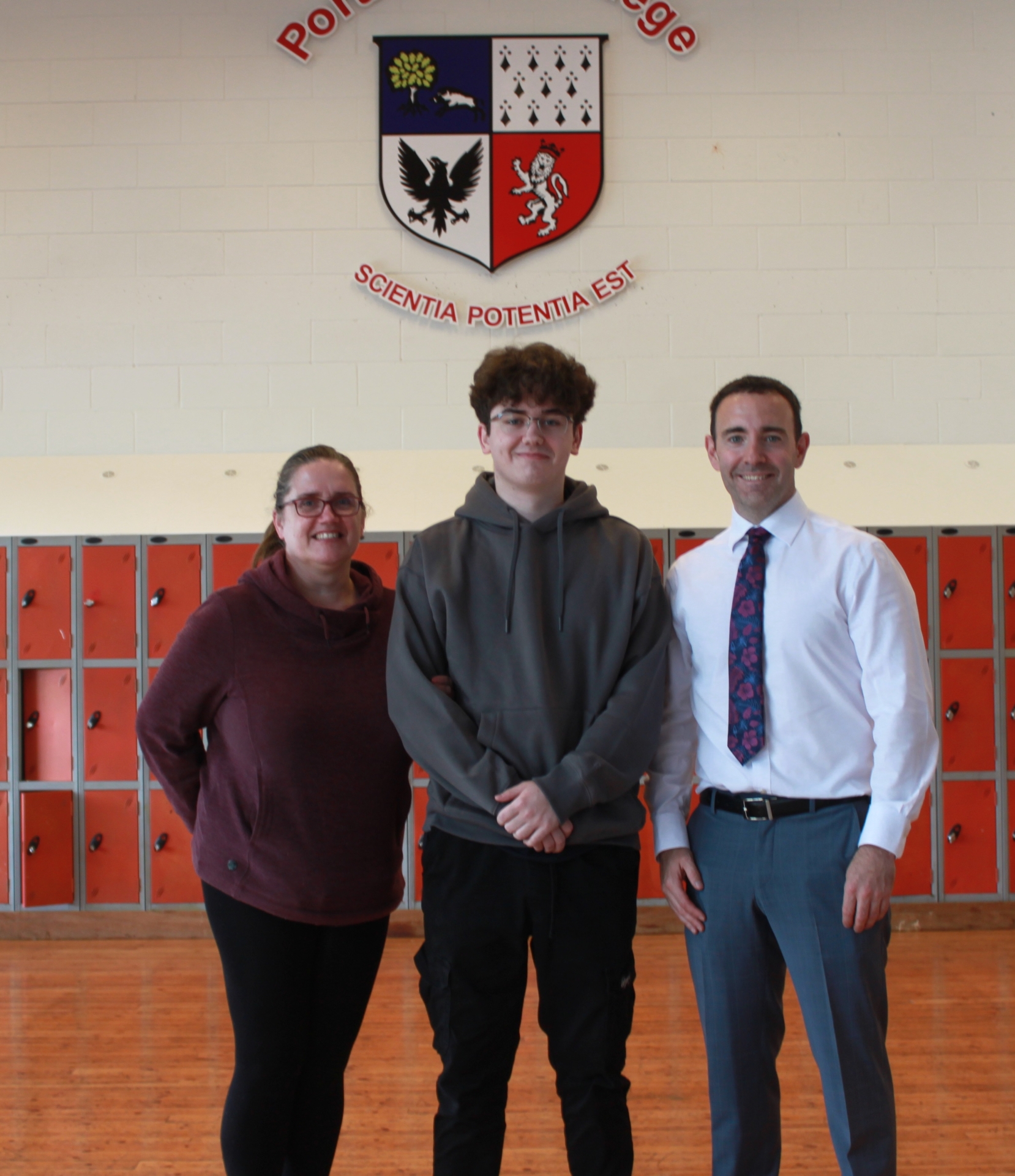 Aidan Donaghy with Mr Travers and his mother Cathy
