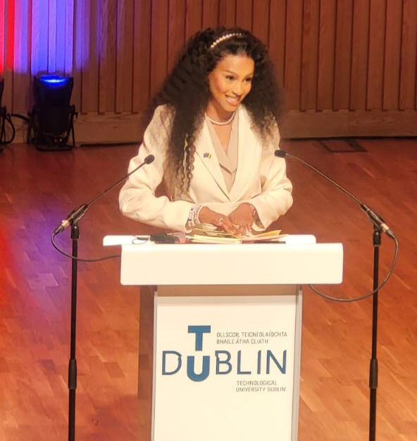 The students heard an inspirational speech from a Dancing with the Stars Ireland celebrity, former Miss Universe Ireland, Aishah Akorede.