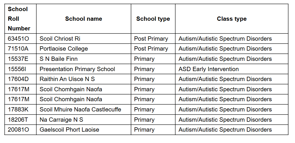 The Department of Education has sanctioned another special class for county Laois to open in this September.
