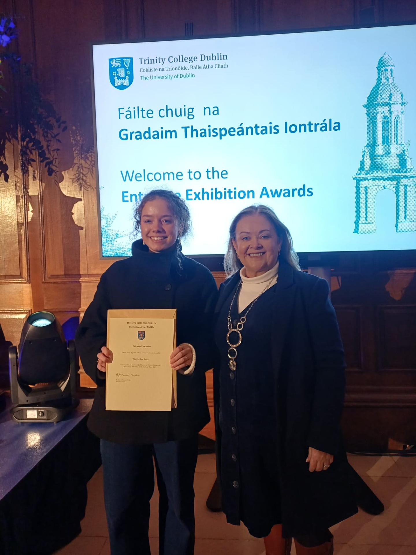 "The award is well deserved and the whole school community wishes Lily well as she pursues her degree in Trinity and completes it in the United States," Ms Kelly finished.