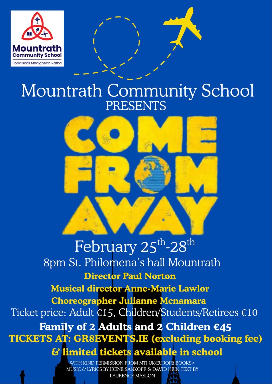 Mountrath Community School is preparing to lift the curtain in St Philomena’s Hall on its upcoming production of the award-winning musical 'Come From Away'.