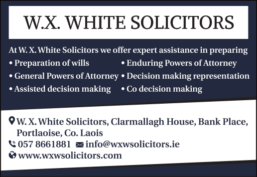 W.X. White Solicitors, Clarmallagh House, Bank Place, Portlaoise, Co. Laois.