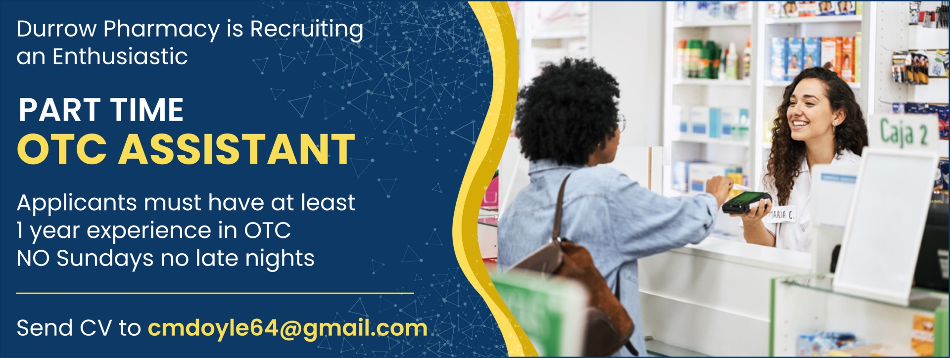 Durrow Pharmacy is recruiting an enthusiastic part-time over the counter (OTC) Assistant.
